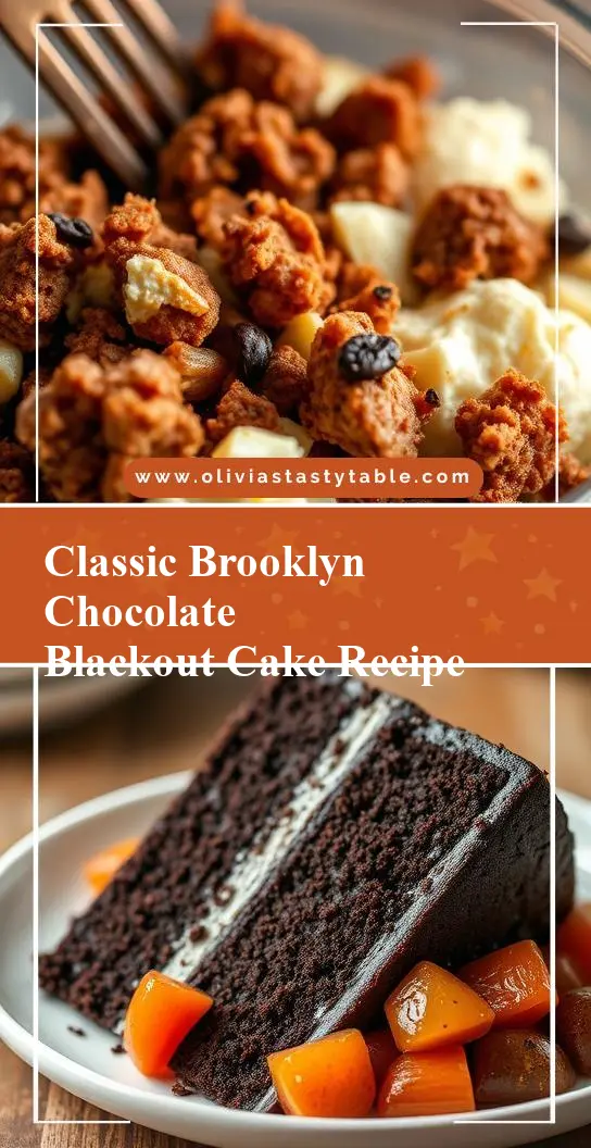 The Classic Brooklyn Blackout Cake is a true showstopper that combines rich, velvety chocolate with the simplicity of a homemade cake. With its accessible ingredients and straightforward instructions, this recipe is perfect for anyone looking to impress their friends and family with a decadent dessert. Feel free to experiment with different flavor variations and substitutions to make the recipe your own, and don’t hesitate to share your creations with others. Whether you’re a chocolate aficionado or just starting your baking journey, the Classic Brooklyn Blackout Cake is sure to become a favorite that you’ll return to time and time again.